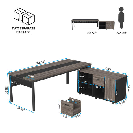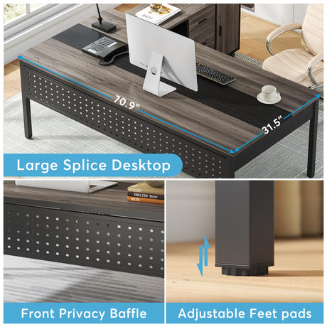67 Inches L-Shaped Office Desk, Corner Computer Desk with Bottom Bookshelves & CPU