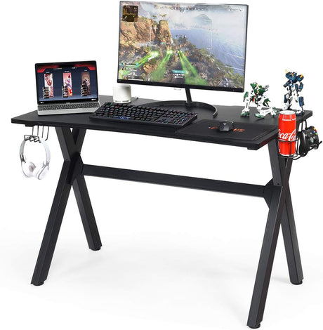 Computer Desk Gaming Desk, Ergonomic E-Sports Desk with Cup & Headphone Holder and Mouse Pad