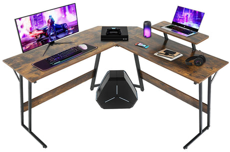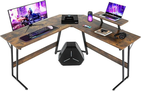 L Shaped Gaming Desk, Computer Corner Desk with Monitor Riser Stand