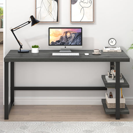 Industrial Computer Desk, Home Office Desk with Storage Shelves, Wood Study Writing