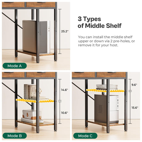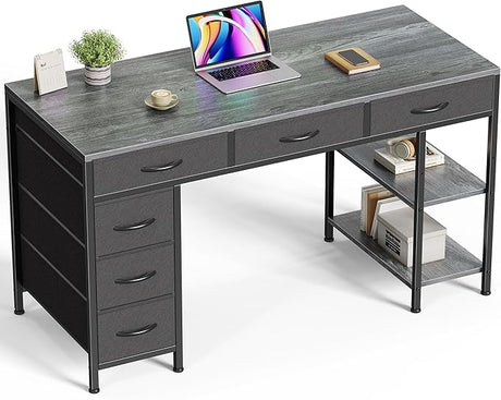 Office Small Computer Desk, Home Table with Fabric Drawers & Storage Shelves