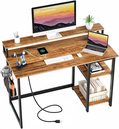 47 inch Gaming Desk with Power Outlets, Small Home Office Desk with Ergonomic Monitor Stand