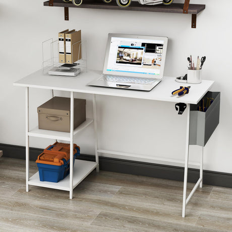 Computer Desk 47inches Trestle Desk PC Desk with Shelf Office Desk Workstation for Home Office