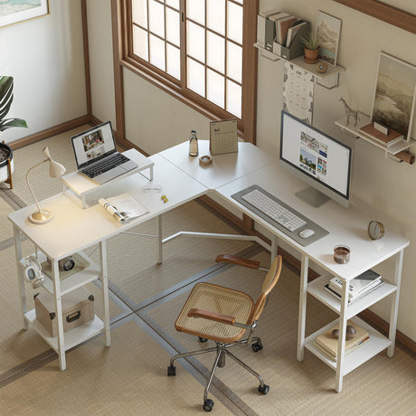 L Shaped Desk with Shelves, 59" Home Office Desk, Reversible Corner Computer Desk