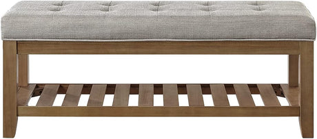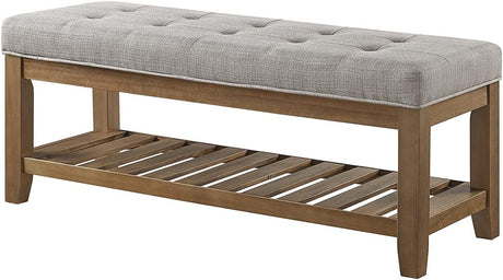 Large Rectangular Upholstered Tufted Linen Fabric Ottoman Bench