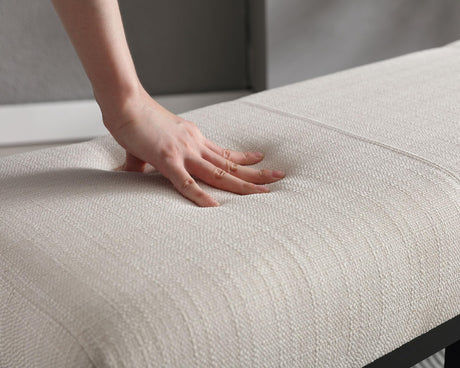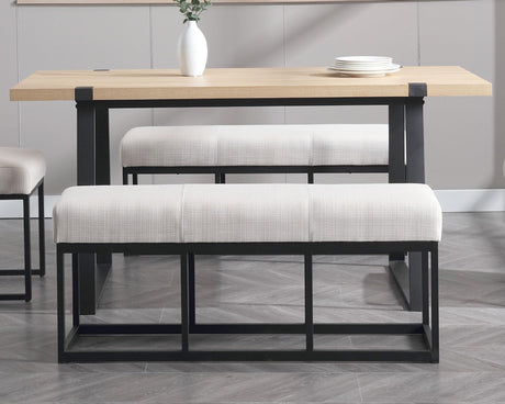 Linen Upholstered Dining Bench with Black Metal Base, 45.25" W Entryway