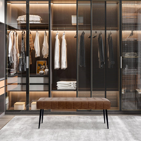 44.5”Bedroom Bench, Modern Faux Leather End of Bed Bench