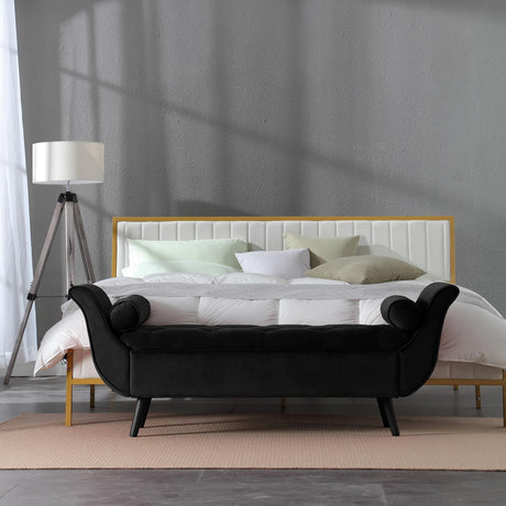 Storage Bench for Bedroom End of Bed, 65" Velvet Upholstered Rolled Armed