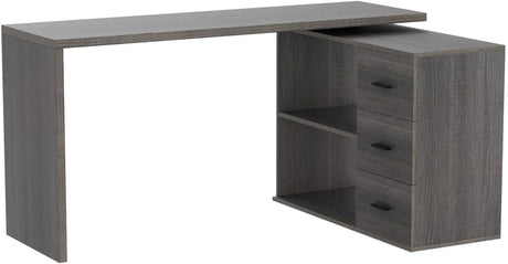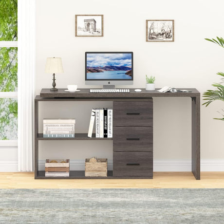 Office Desk with Storage, Reversible Computer Desk with Drawers and Printer Space,