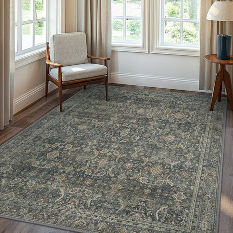 9x12 Large Area Rug - Vintage Washable Rug for Living Room with Non-Slip Low-Pile