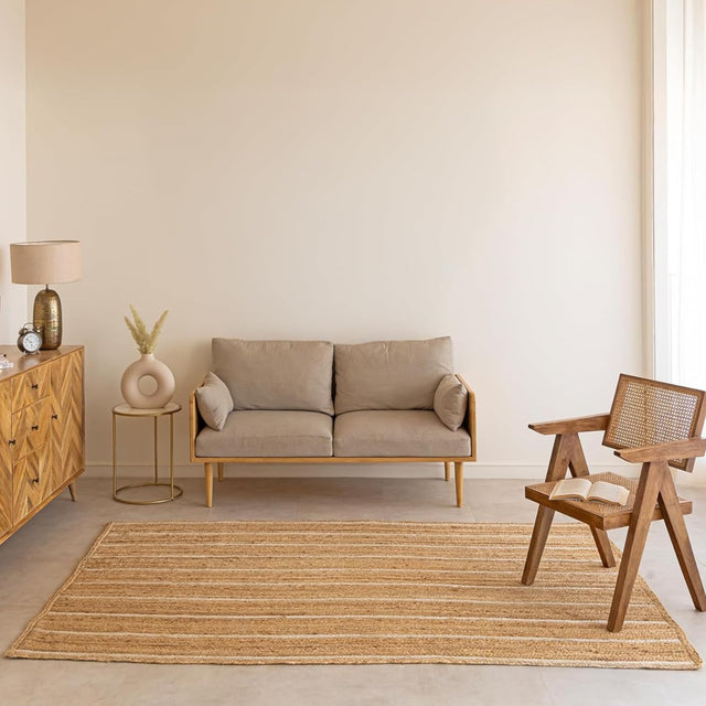 Elevate your space with this premium natural jute area rug, featuring elegant off-white stripes and artisan braided construction. Perfect for creating a warm, inviting atmosphere in any room, this eco-friendly rug combines timeless boho-farmhouse aesthetics with exceptional durability.