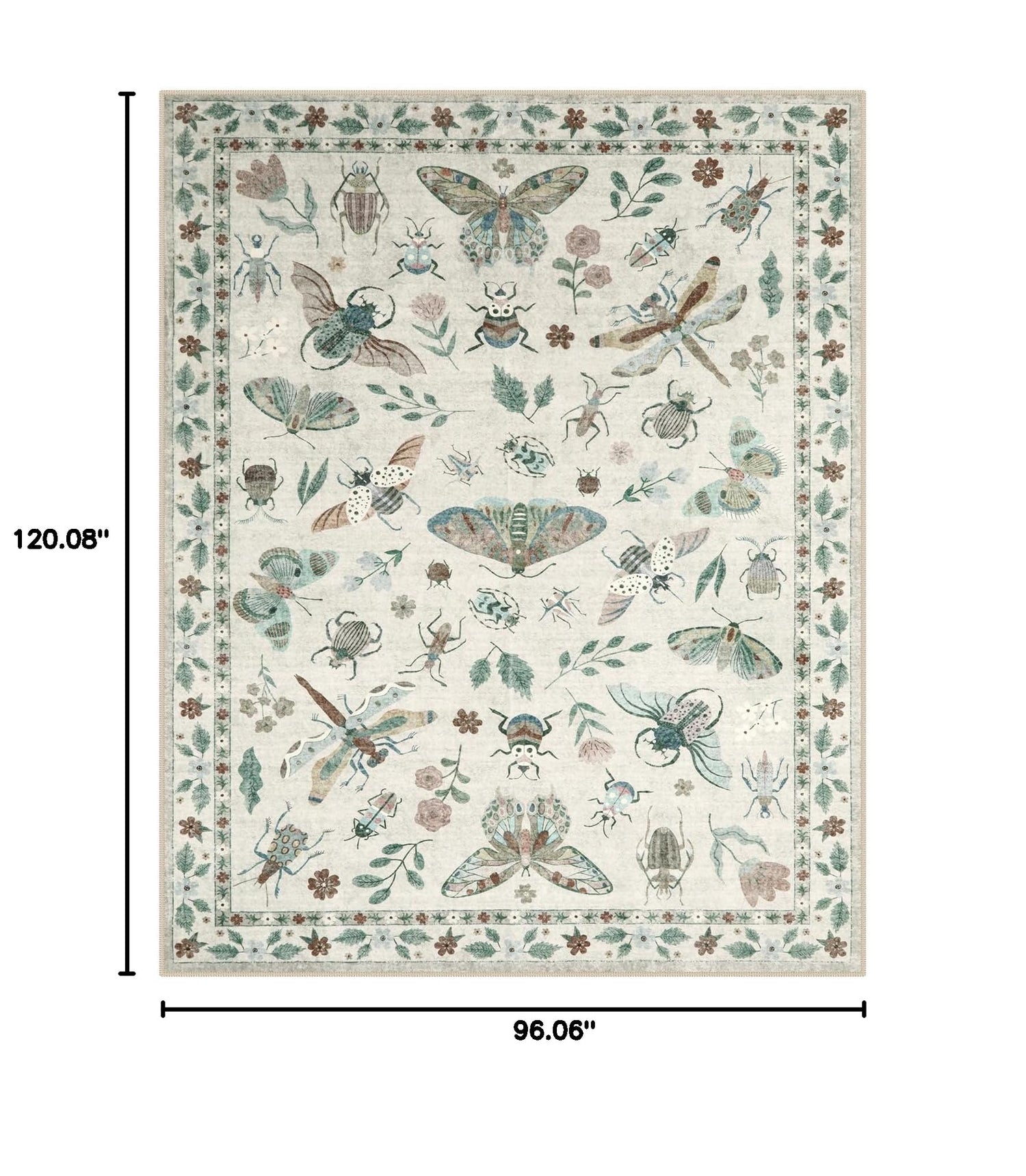 Insect Washable Area Rug 8x10 - Soft Non-Slip Bedroom Carpet