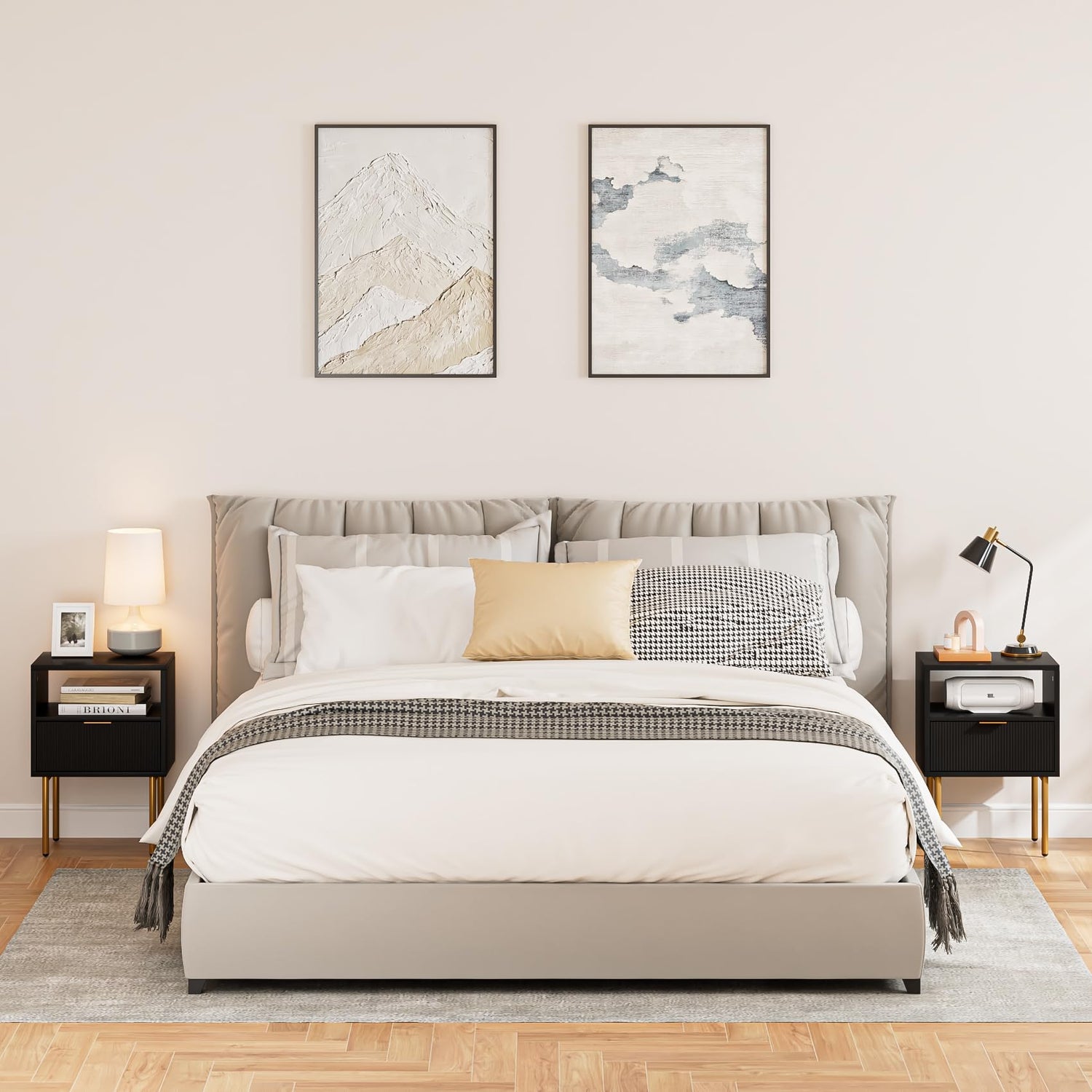 - Simple and Modern Design Black Nightstand: classic black and matte gold design, creating a simple and modern atmosphere, suitable for various styles of home decoration. Add elegance to your home life and accompany you through every day.