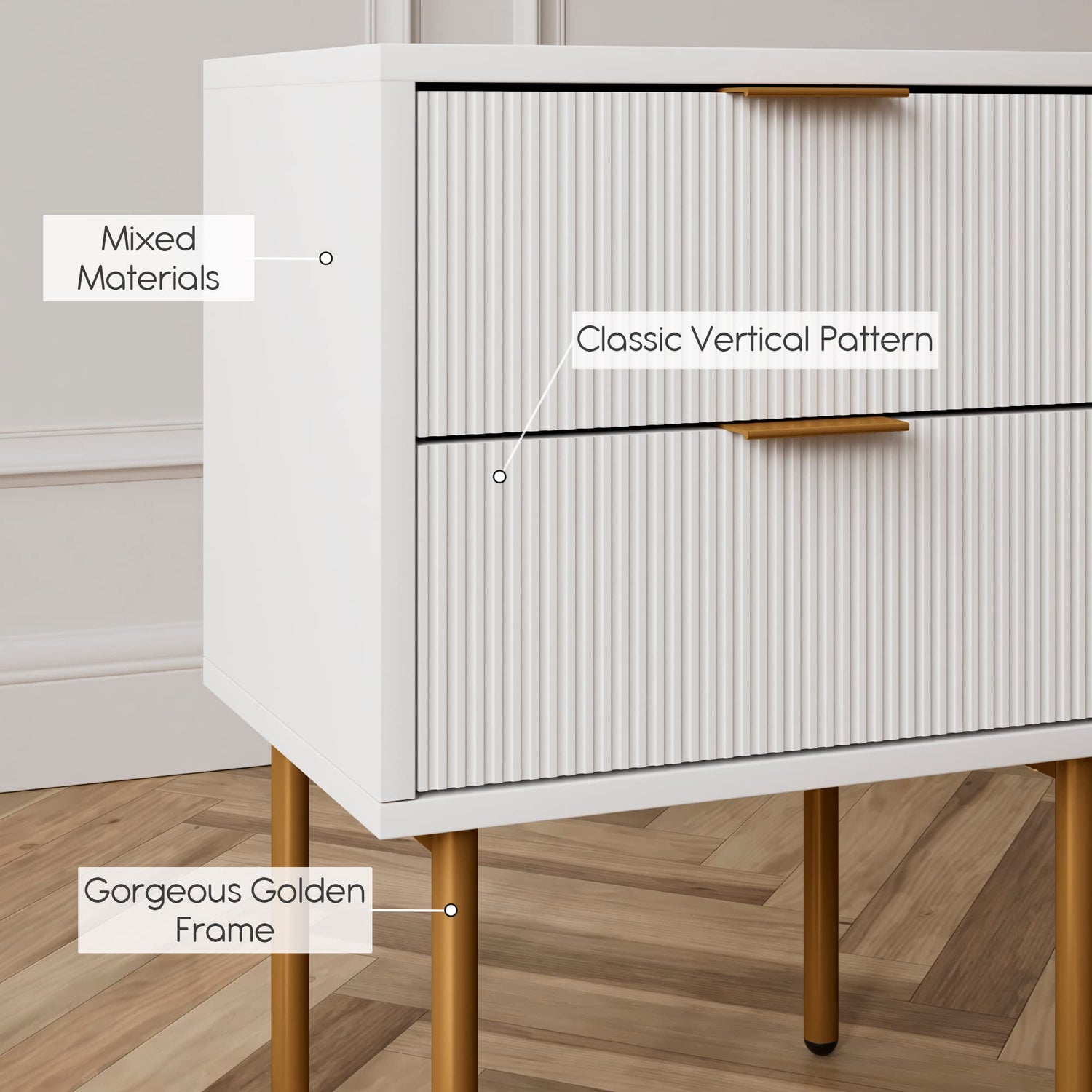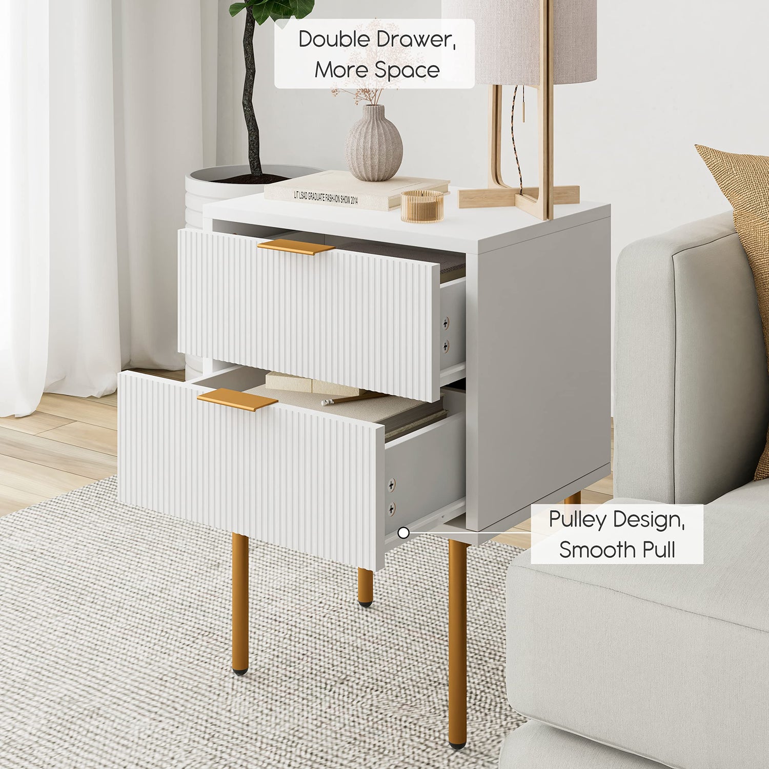 Nightstand with Drawers, Fluted Night Stand, End Table for Living Room