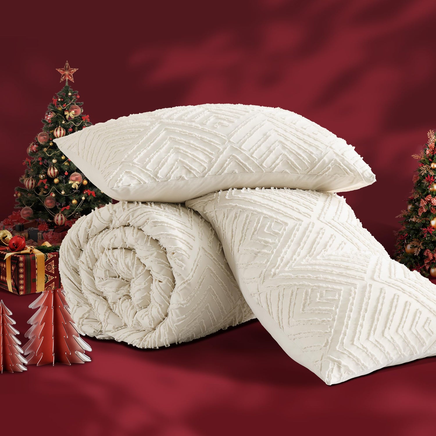 - GREAT GIFT IDEA: Queen size comforter set includes 1 white comforter (90x90Inch) and 2 Pillowcases (20x26Inch). It's a great gift idea for your loved ones on special occasions: for Anniversary, Christmas Day, Birthdays, or other holidays.