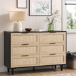 Sar Rattan Dresser for Bedroom, 6 Drawer Wide Dresser, Boho&Farmhouse Chest of