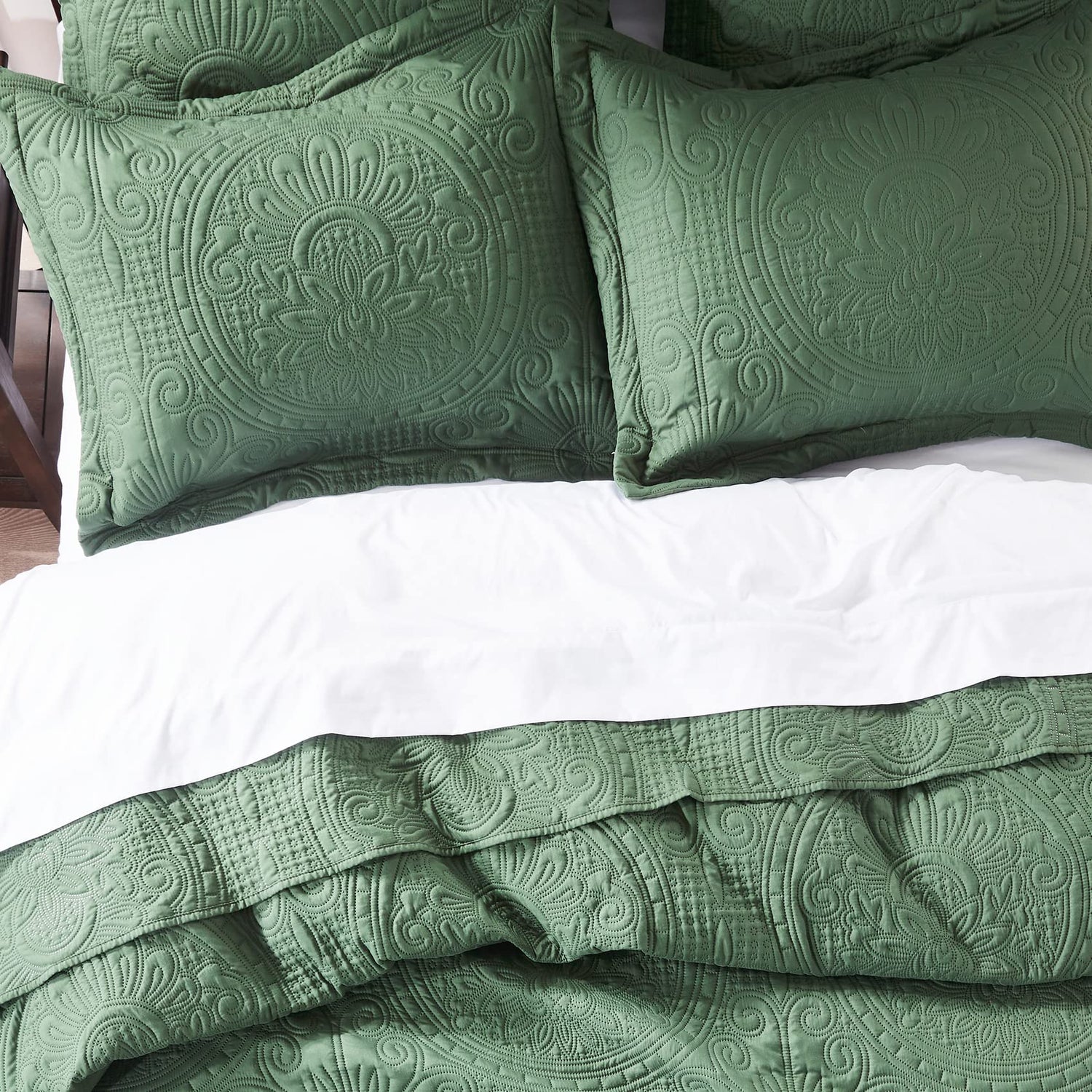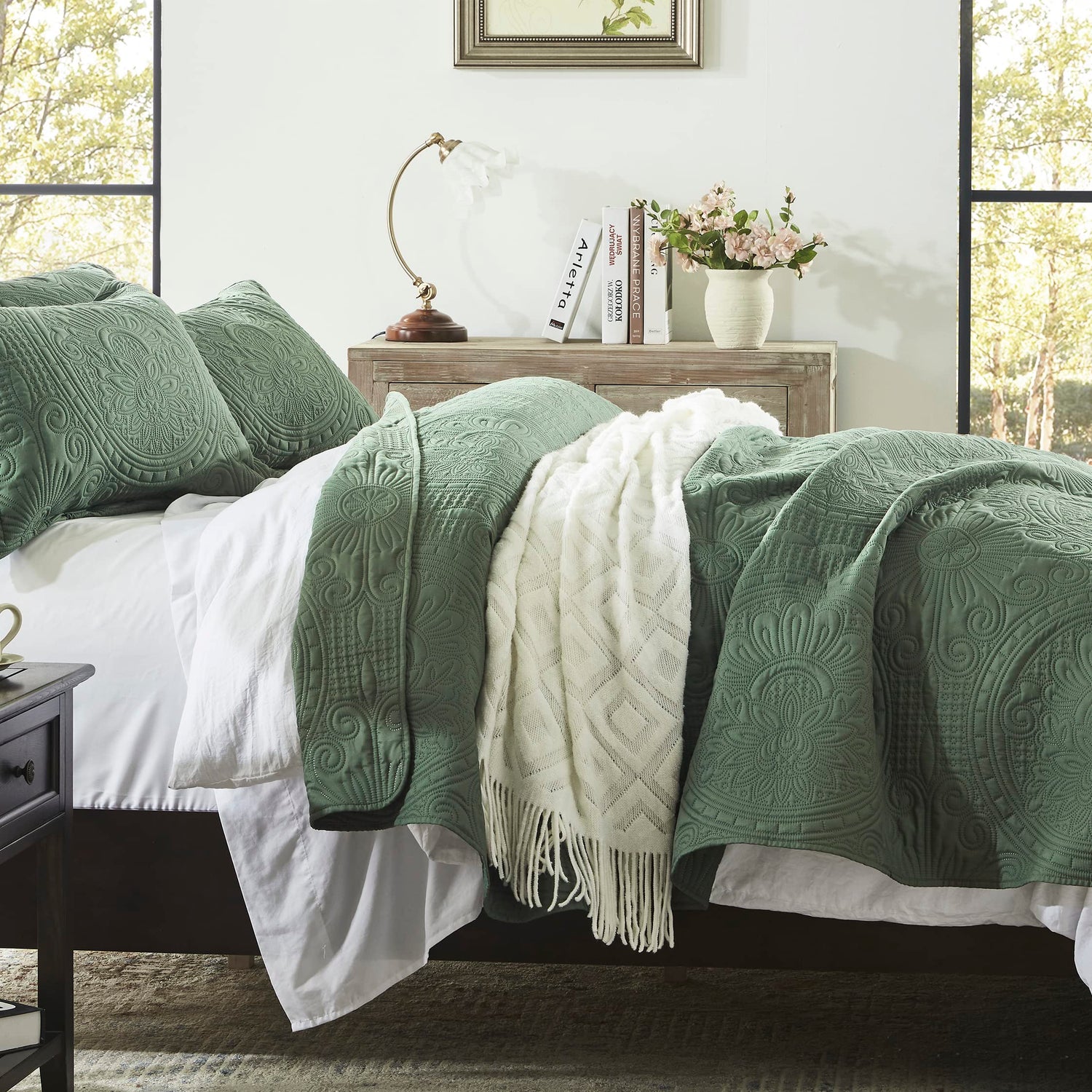 Quilt King Size Bedding Set-Olive Green Embossed, Bedspreads-Lightweight Summer Soft