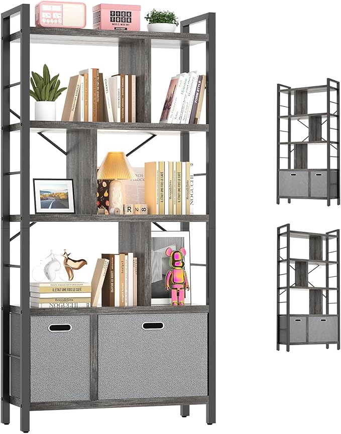 - Large Storage Space: 5-Tier book case with 2 fabric drawers and 5 tier shelves provides enough space to display and store your favorite items, books, family photos, CDs, and plants. Make your space more elegant and tidy
