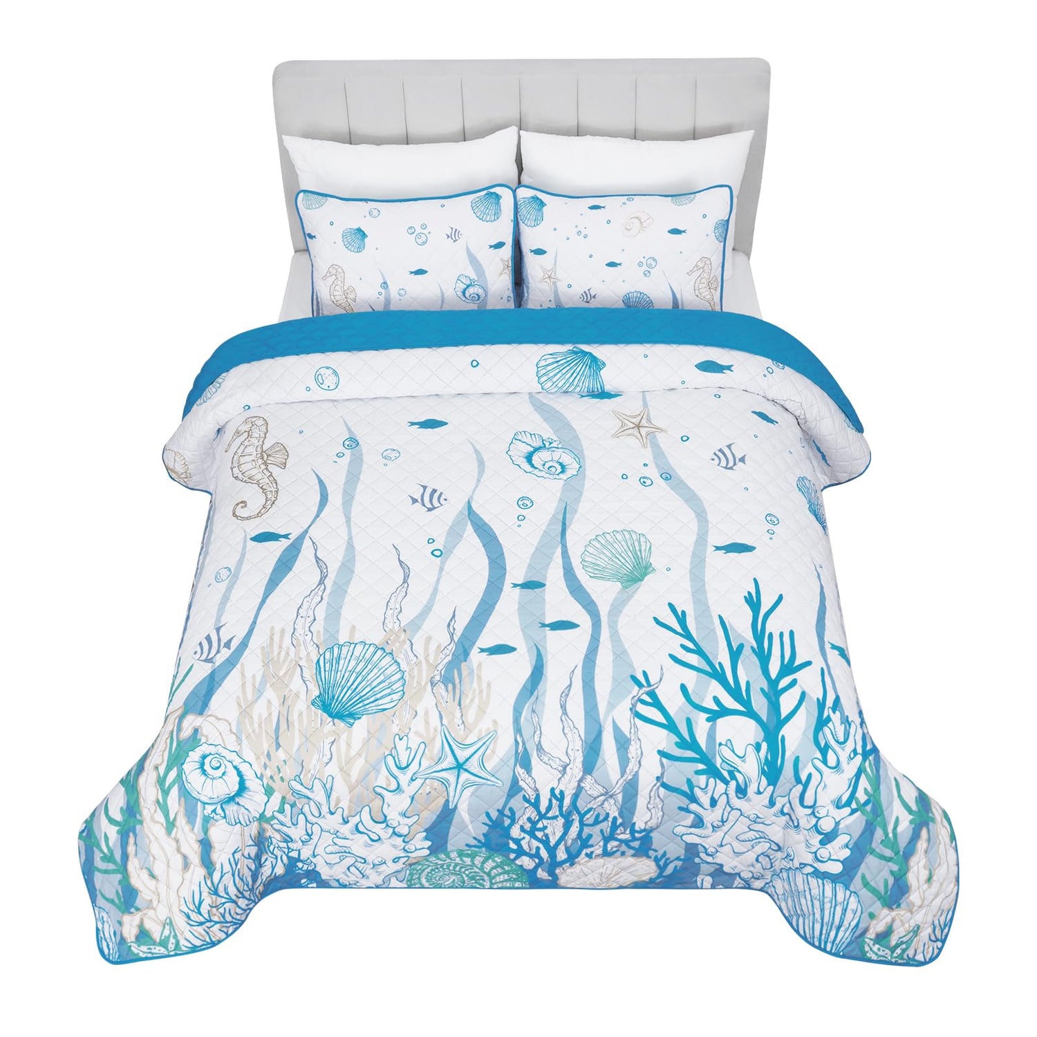 - Summer Bedroom Decor - ASPMIZ coastal quilt sets feature an array of marine-inspired patterns, from elegant seashells and classic nautical coral, breathe new life into your bedroom decor.