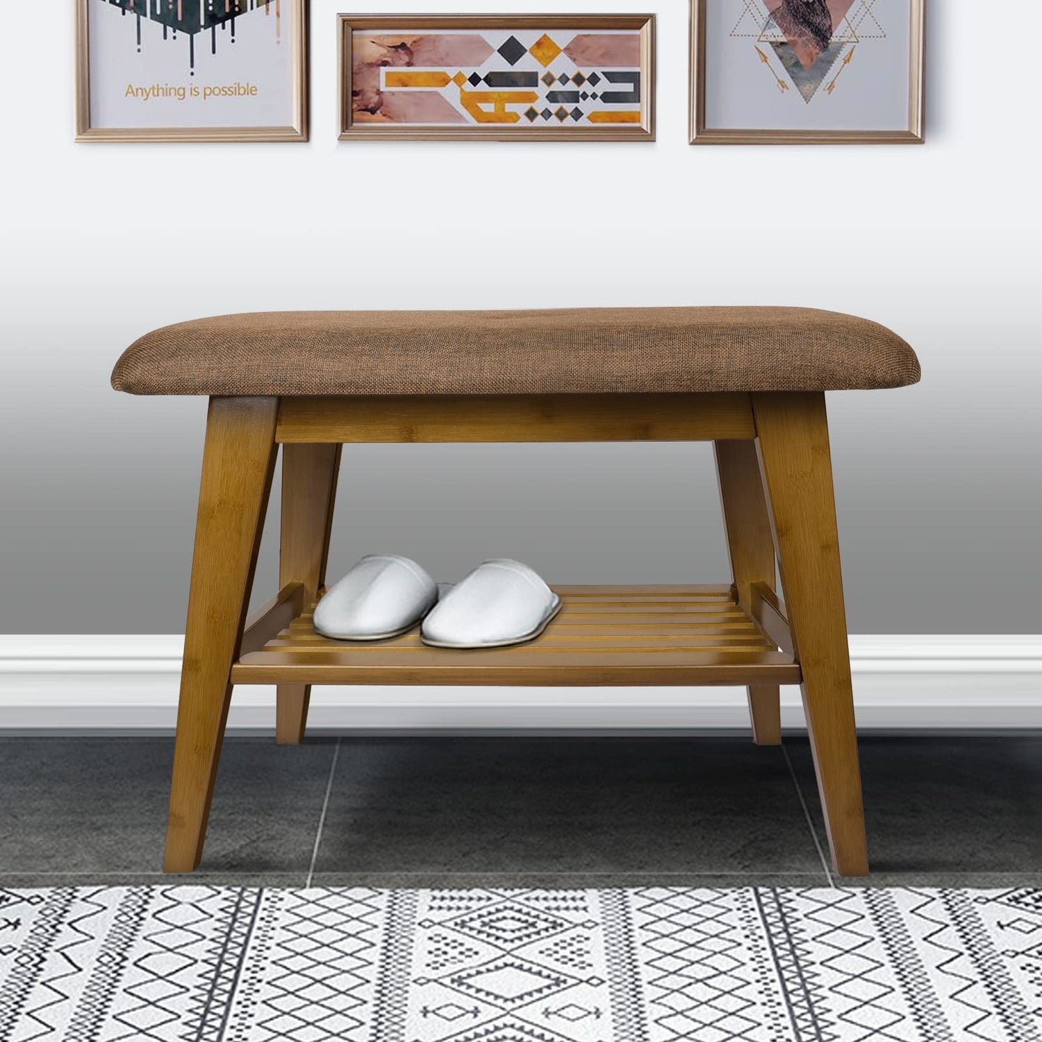 Shoe Bench Entryway with Storage, 2 Tier Small Shoe Storage Bench, Linen Padded - Brown / 23.6"L x 11.8"W x 17.7"H is backordered and will ship as soon as it is back in stock.