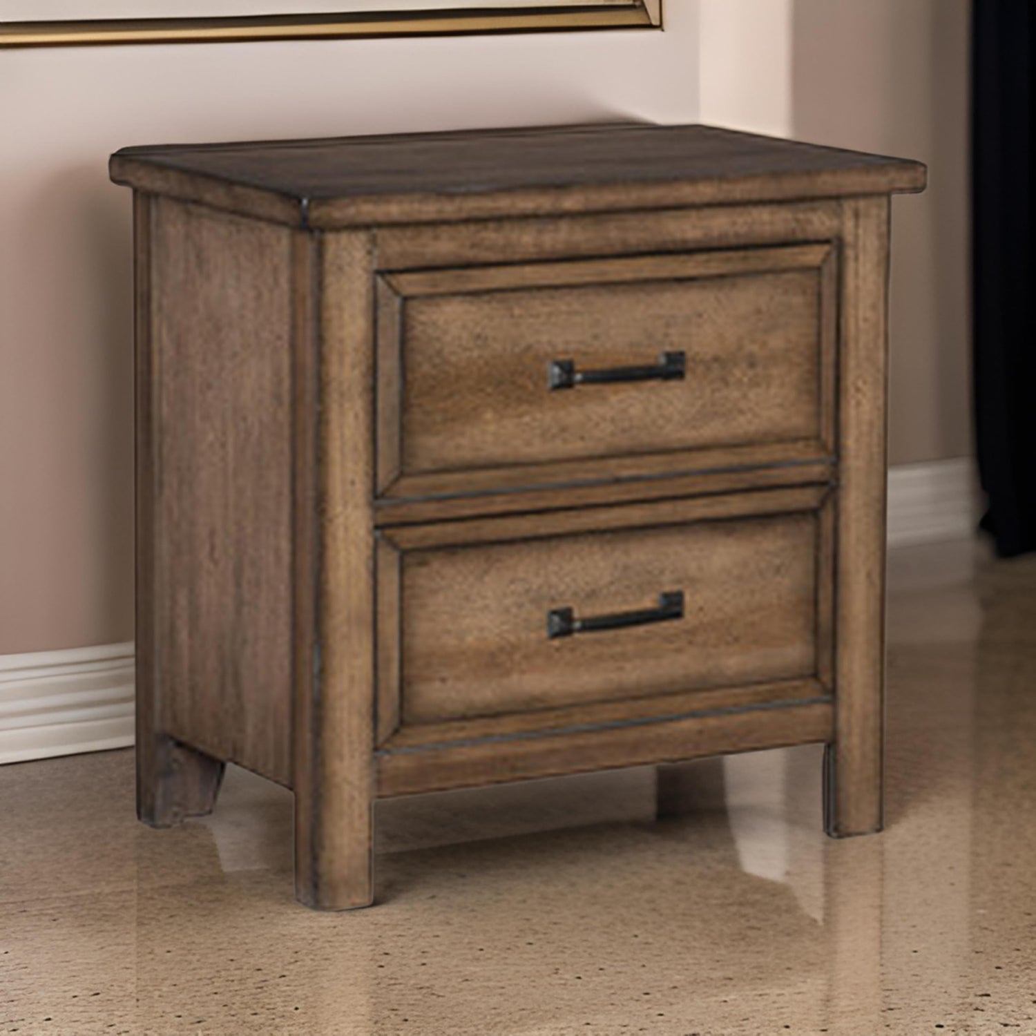Reva 27 Inch Nightstand, 2 Drawers, Metal, Light Solid Wood - Rustic is backordered and will ship as soon as it is back in stock.