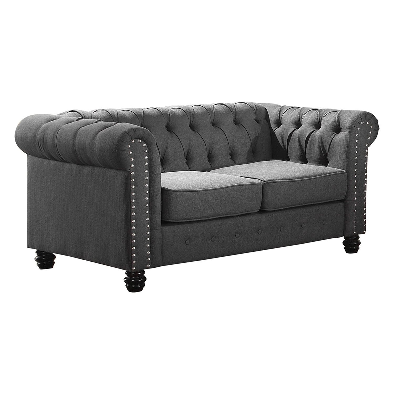 Venice Contemporary Tufted Upholstered Linen Blend Loveseat, Charcoal