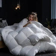 - 4. The duvet insert queen features a 3D baffle box construction with high-quality stitching to ensure the lightweight down is evenly distributed and prevents shifting or clumping. The filling fully expands to create maximum fluffiness, making the queen down comforter as fluffy as a cloud, eliminating cold spots. Double stitching is used to prevent the down from leaking out. The 4 loops and 4 stitched corner tabs ensure the queen down comforter stays in place within the cover.