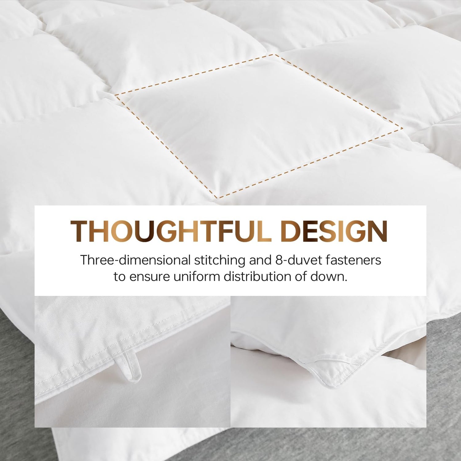 Goose Down Comforter Queen Size, 90x90 inches, 50 oz Fill Weight, 750 Fill Power, 100%