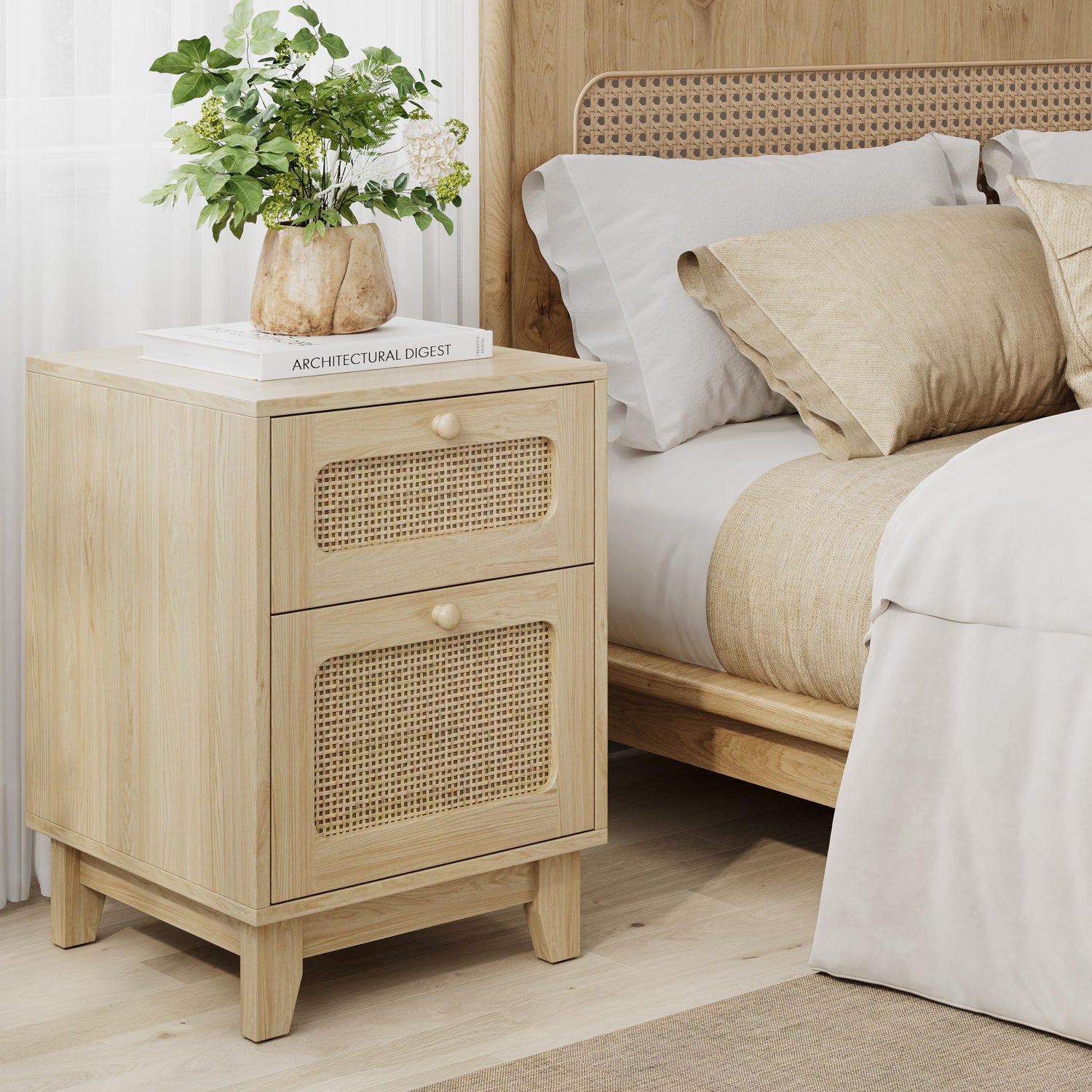 Modern Wicker Rattan Stand,Rattan Stand with Drawer and Charge Station