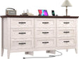 Farmhouse 9 Drawers Dresser, 63" Wood Dresser for Bedroom Wide Chest of Drawers,