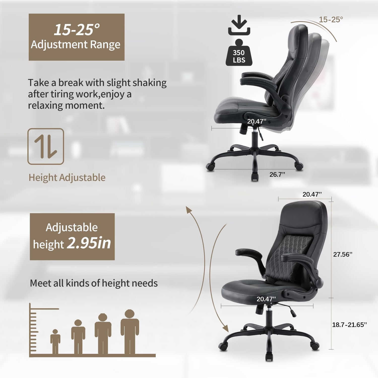 - Comfortable Office Chair: Executive office chair adopts high-quality material, soft and comfortable, and skin-friendly.Extra wide seat and backrest are filled with high-density foam, high-quality PVC leather, waterproof, wear-resistant, and durable. The desk chair's weight capacity is 350 pounds, and its appearance is fashionable. Soft cushion armrest supports the body, improves work efficiency, and achieves a perfect balance between work and rest