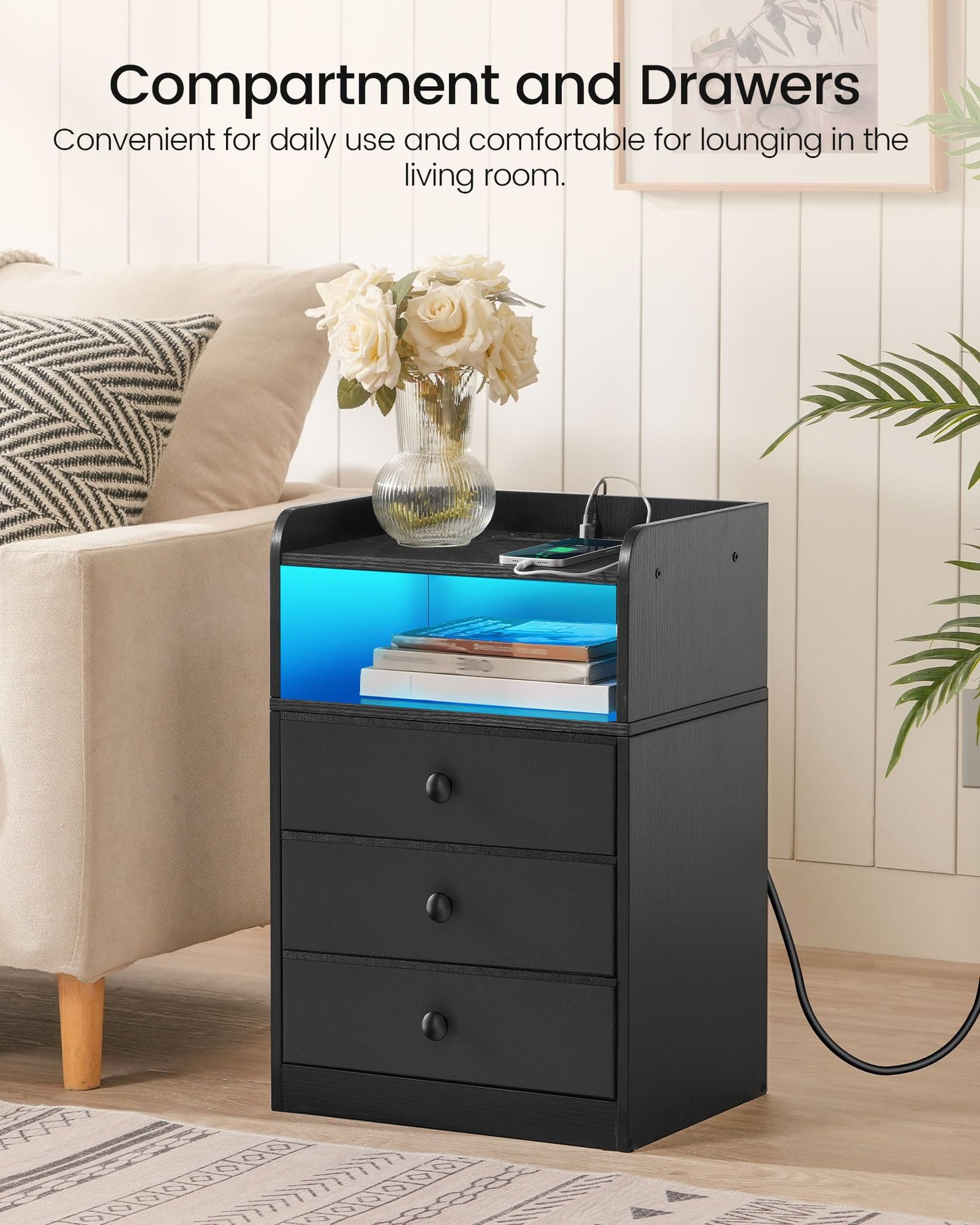 CHOEZON Nightstand with Charging Station and LED Light, Side Table - Black is backordered and will ship as soon as it is back in stock.