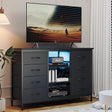 - Made from a sturdy metal frame and durable wood board to offer stable support and ensure years of use. The chest of drawers is made of superior MDF board and non-woven fabric for durability and ease of cleaning, the appearance features a high-grade PU finish, making the dresser more stylish and elegant. The dresser TV stand also comes with anti-tip devices to prevent it from tipping over.