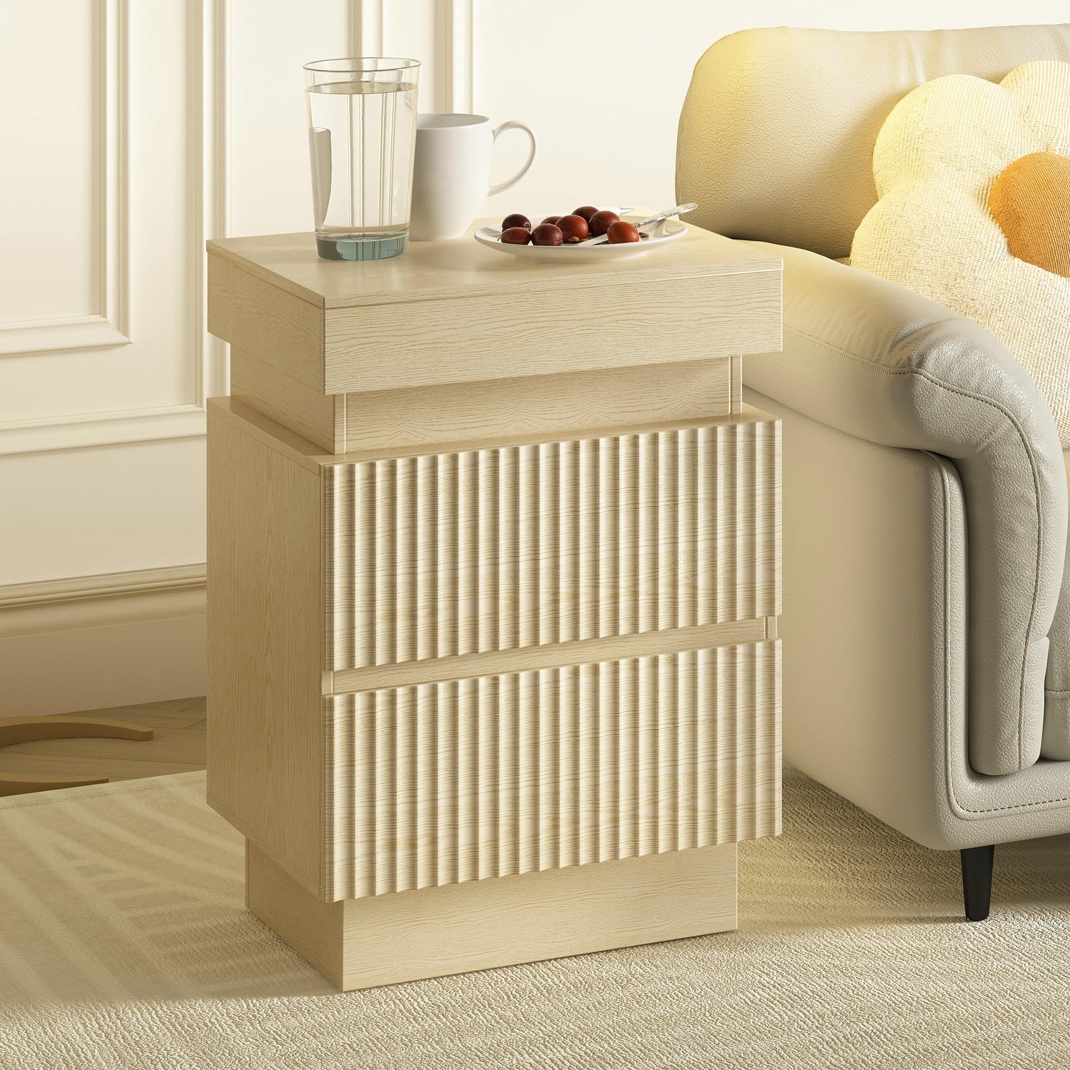 Led Nightstand with Charging Station, Fluted Night Stand with Drawers and Light, 26" Height - Oak Natural is backordered and will ship as soon as it is back in stock.