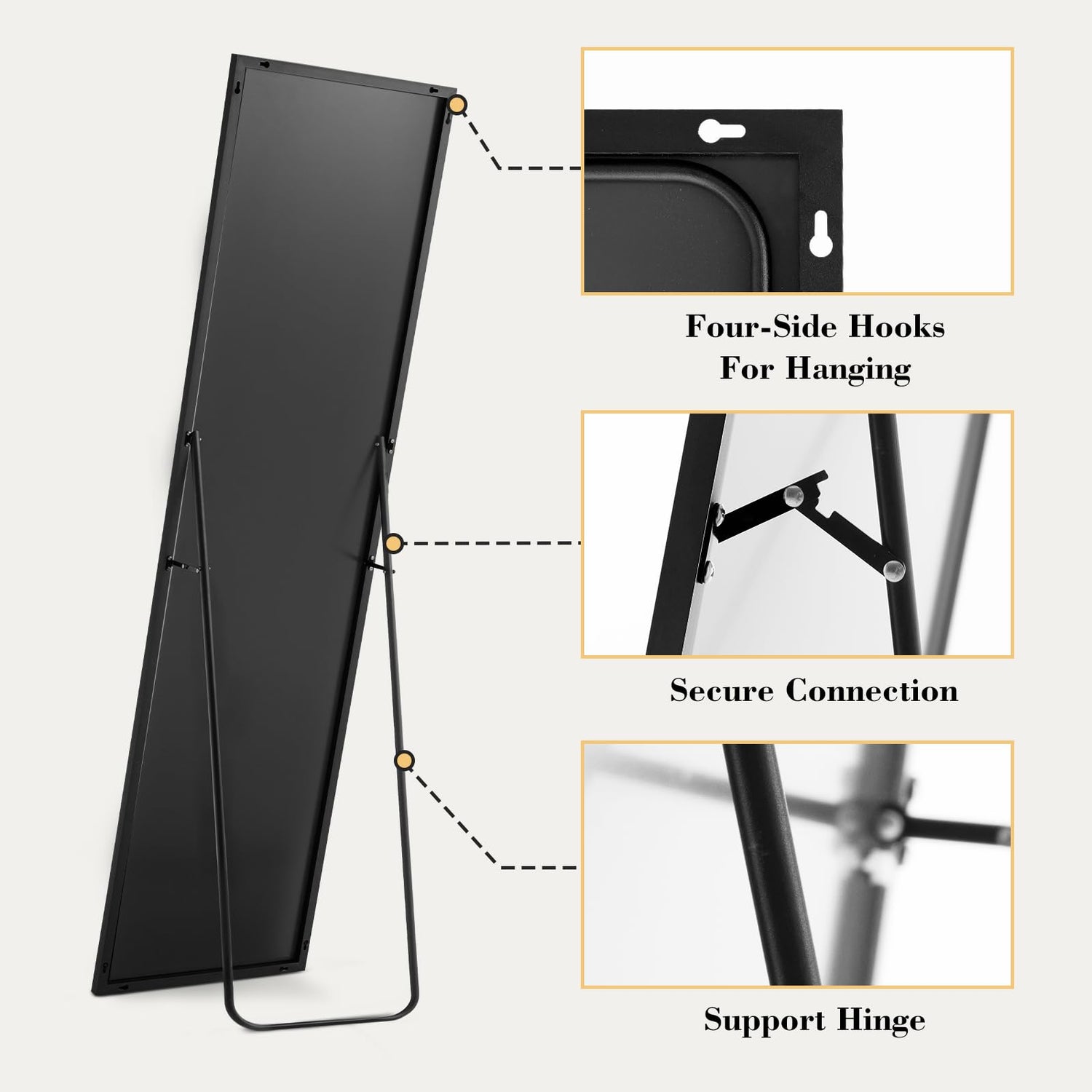 DUMOS Full Length Mirror with Stand, 59''×16'' Floor Mirror with Aluminum Alloy Frame for Bedroom, Standing Full Body Mirror with Shatter-Proof Glass for Wall, Living Room, Cloakroom, Rect-Black,