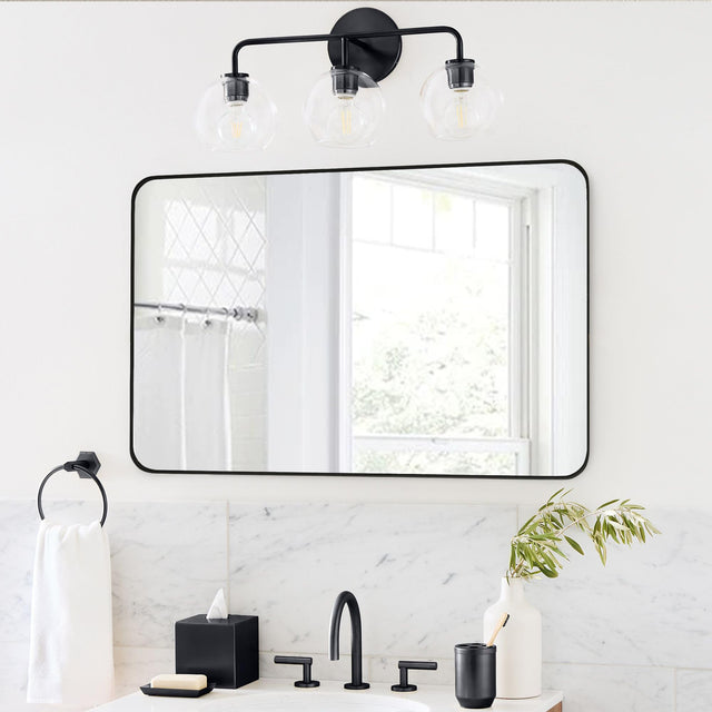 Black Framed Mirror for Bathroom, Rounded Rectangle Mirrors