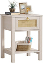 Rattan White Nightstand Set of 2: Sturdy Wood Night Stand