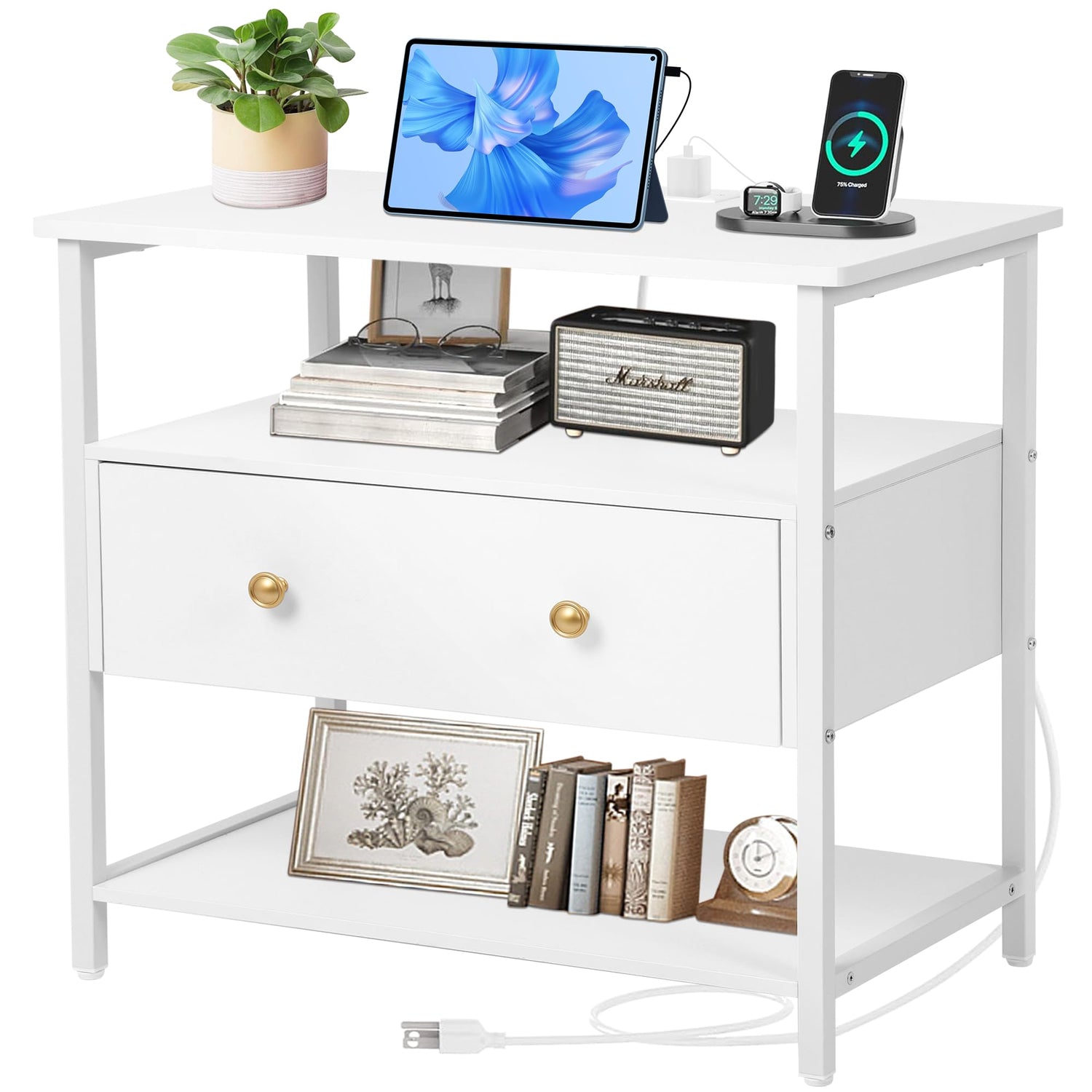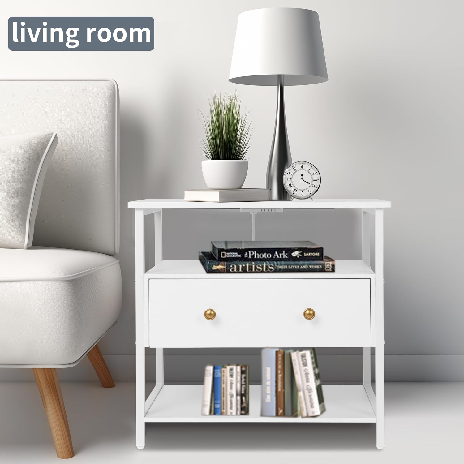 27 inch Nightstand Side Table with 1 Layer of Wooden Drawers,Nightstand with Charging Station
