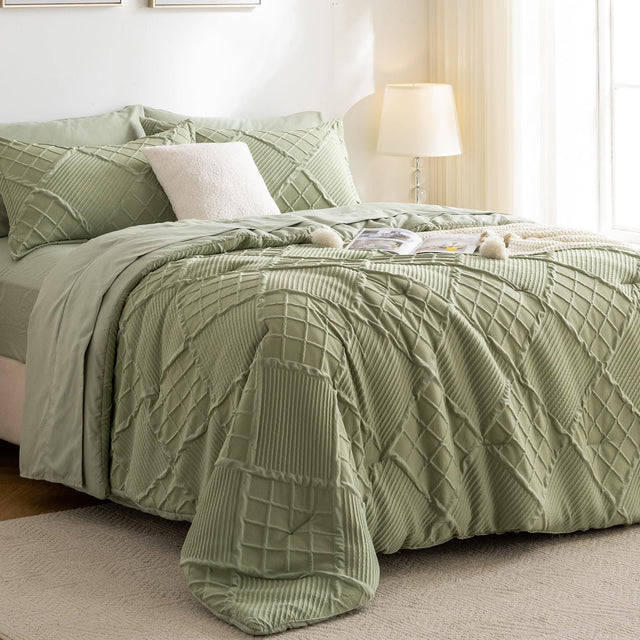 - The Checkered king comforter features chic seersucker craft with elegant 3D-embossed , which offers sophisticated look to the room. This sage green bedding comforter set is a great gift for Christmas Day or other holidays.