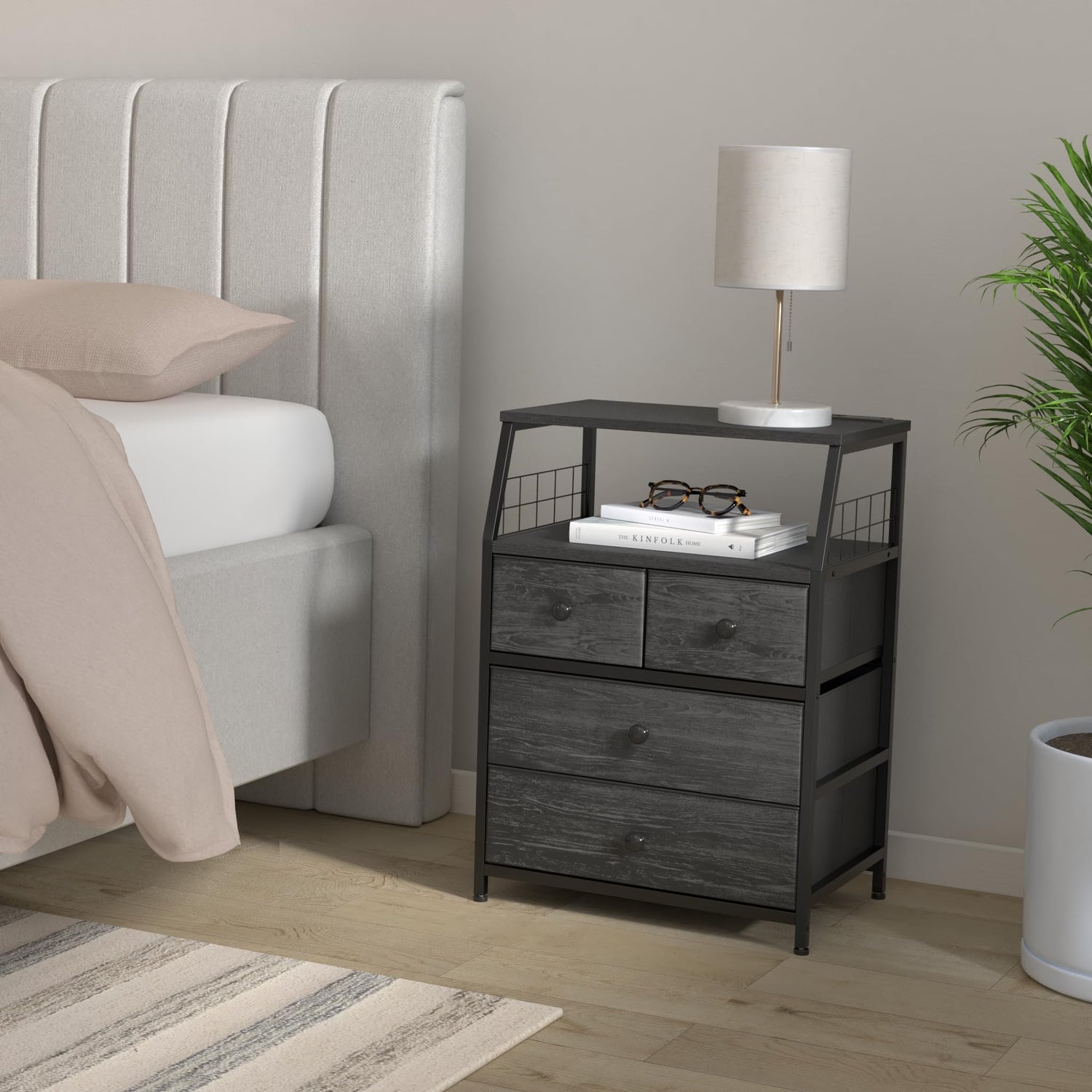 - Since all drawers are made of fabric, the night stand is light to easily move from bedroom to living room. The smart nightstand total load bearing 100 LBS, which is solid and stable. Nightstand with charging station with perfect dimensions and open storage space is great for books, printer and decorations, make it also works as a sofa side table or even as a printer table beside the desk in study, office.