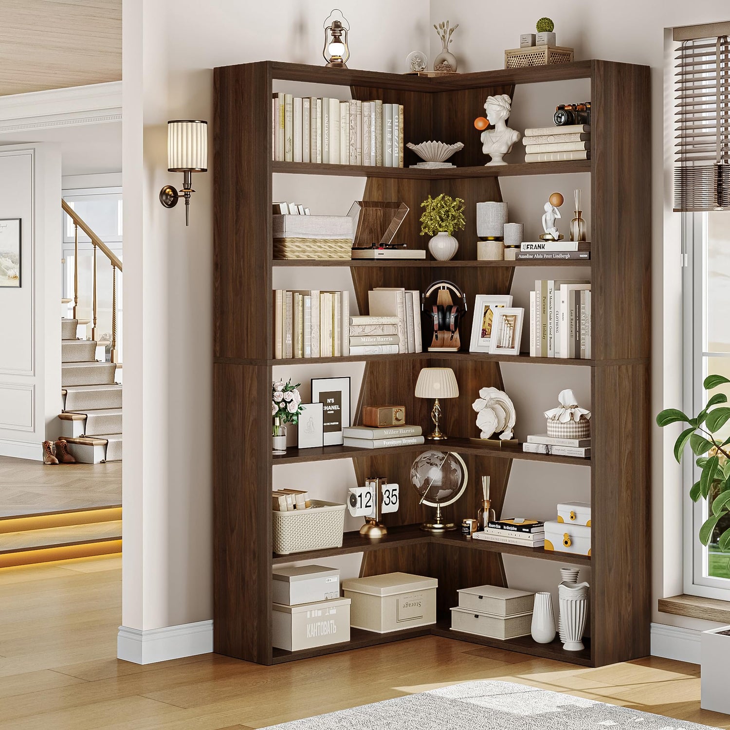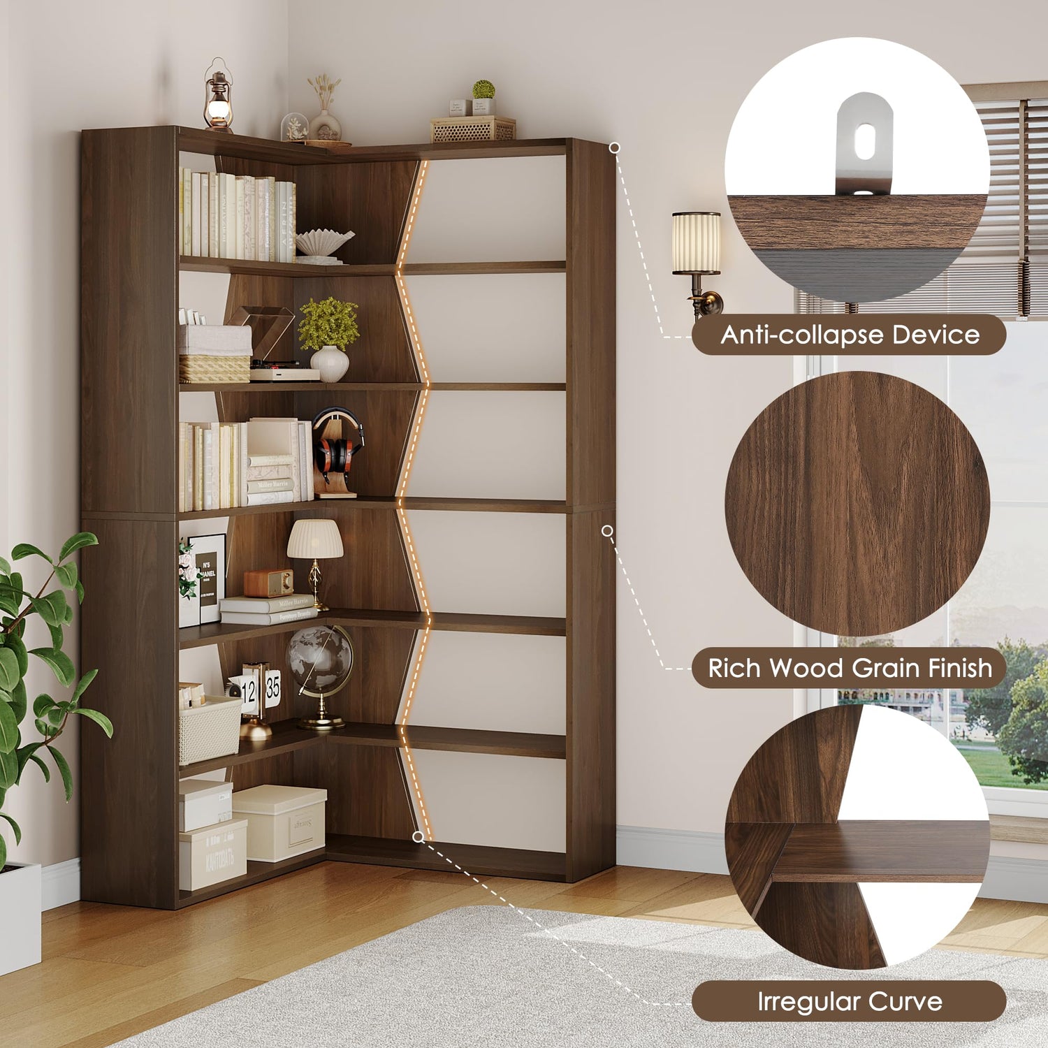 6-Tier Corner Bookshelf, Modern Bookshelf and Bookcase, Tall Bookcase Open Display