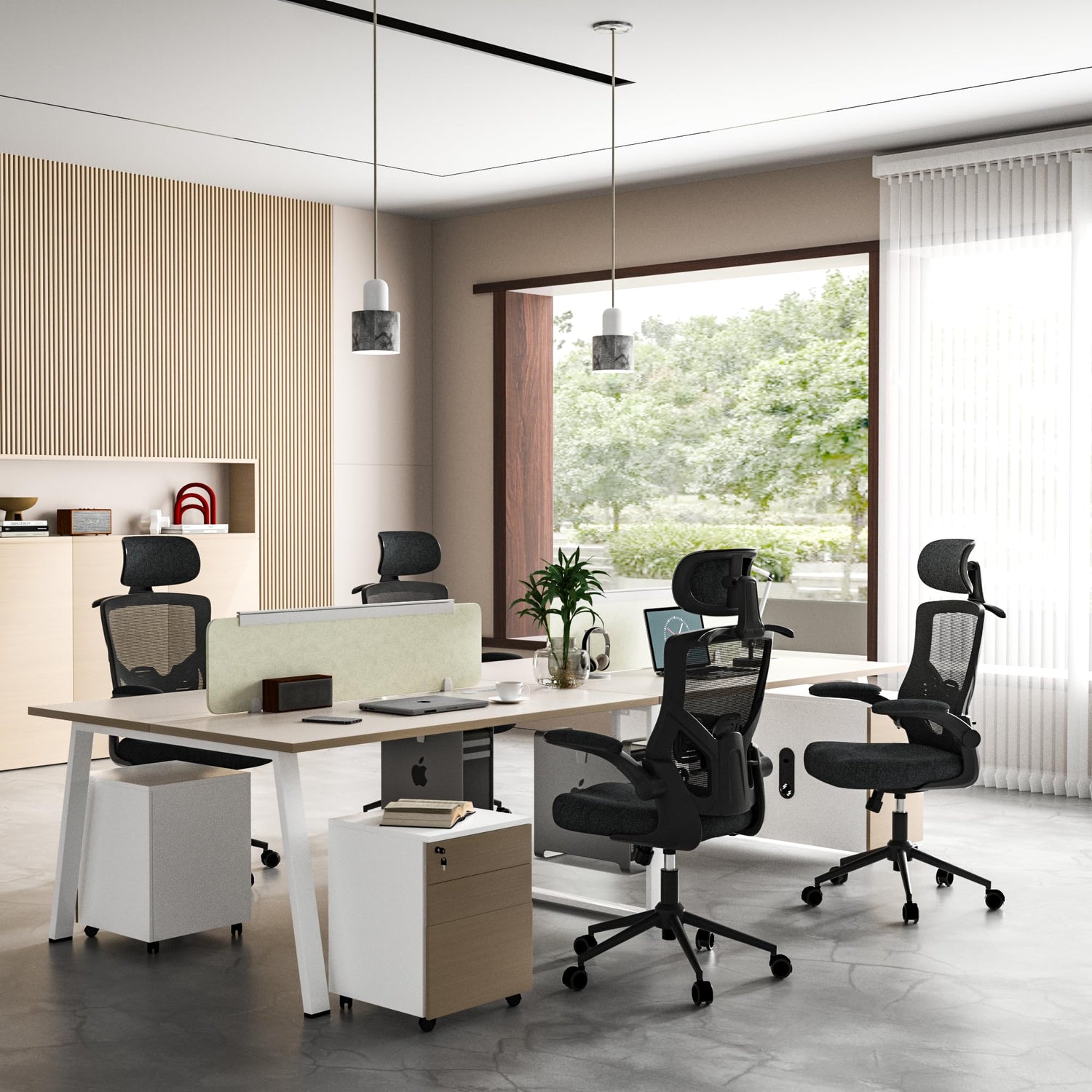 - Â The executive office chair is equipped with flip-up armrests, allowing you to easily slide the chair directly under your desk, thereby saving valuable space in your office area. Additionally, the chair features a practical coat hanger design at the back, providing a convenient place to hang your clothes or bags, helping to maintain a neat and tidy appearance in your workspace.
