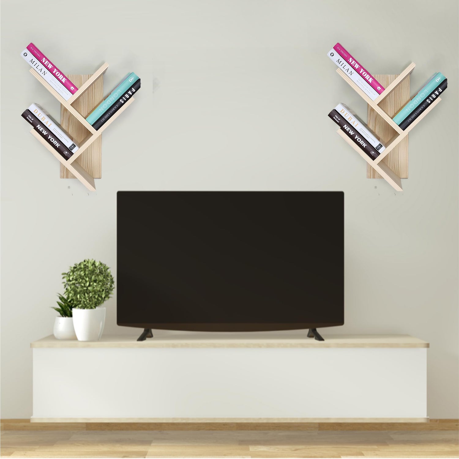 - Boasting a distinctive tree-branch-inspired open structure, this bookshelf effortlessly suits a range of settings like living rooms, offices, and kids' rooms. Its layout facilitates the effortless showcasing of books, magazines, and decor.