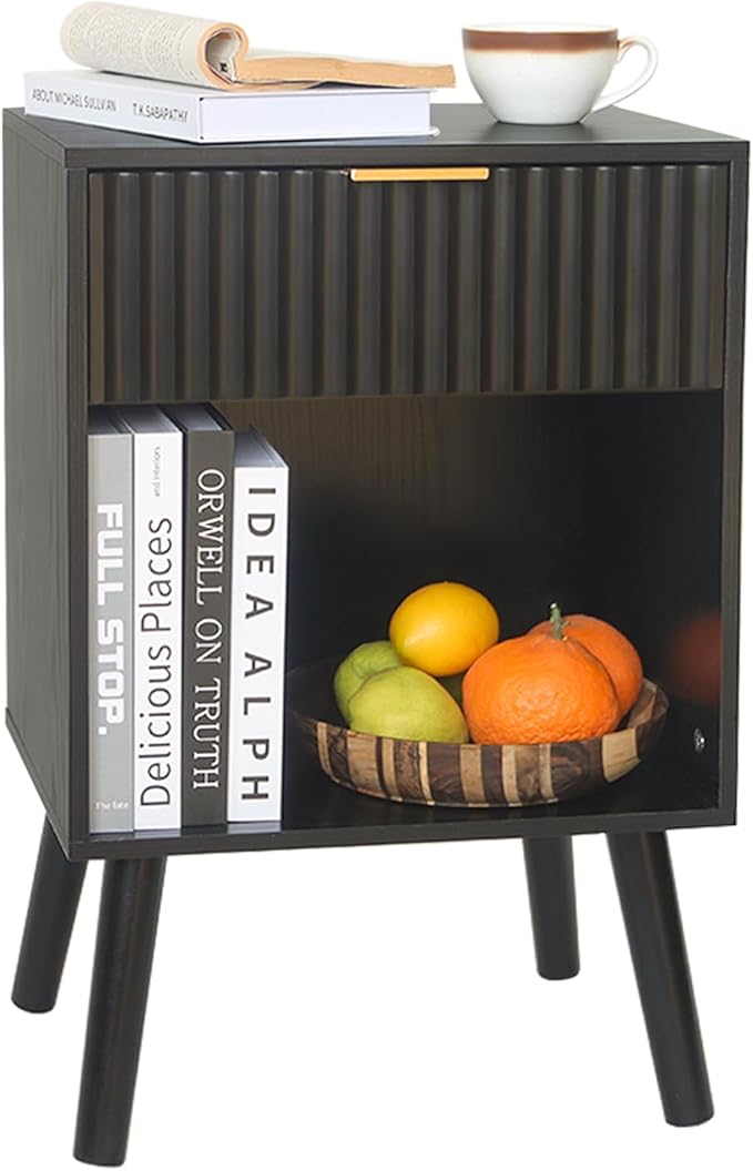 - Chic Fluted Nightstand: The charming walnut grain, smooth surface, metal handle, and curved drawer create this mid century modern nightstand. The fluted drawer is corrugated, which makes this wood bedside table more unique and stylish, while the metal drawer handle matches natural legs, and exudes a vibe of elegance