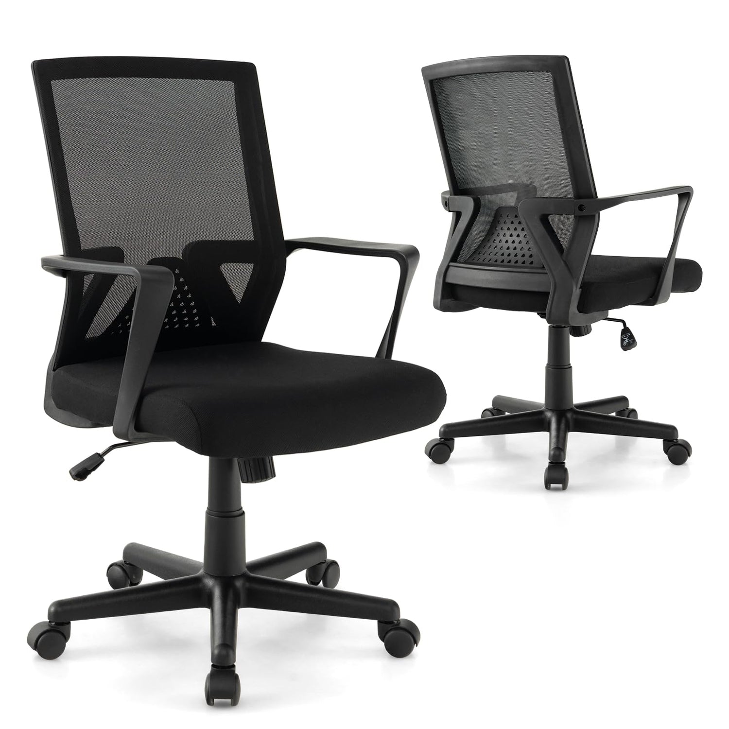 - This home office chair features a high-resilience sponge cushion covered with breathable mesh fabric to provide you with a cozy sitting experience. What’s more, the ergonomic backrest design with lumbar support fits your lumbar to reduce back pressure. Comfortable armrests are designed to rest your arms.