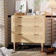 6 Drawer Double Dresser for Bedroom, Modern Rattan 6 Drawer Dresser