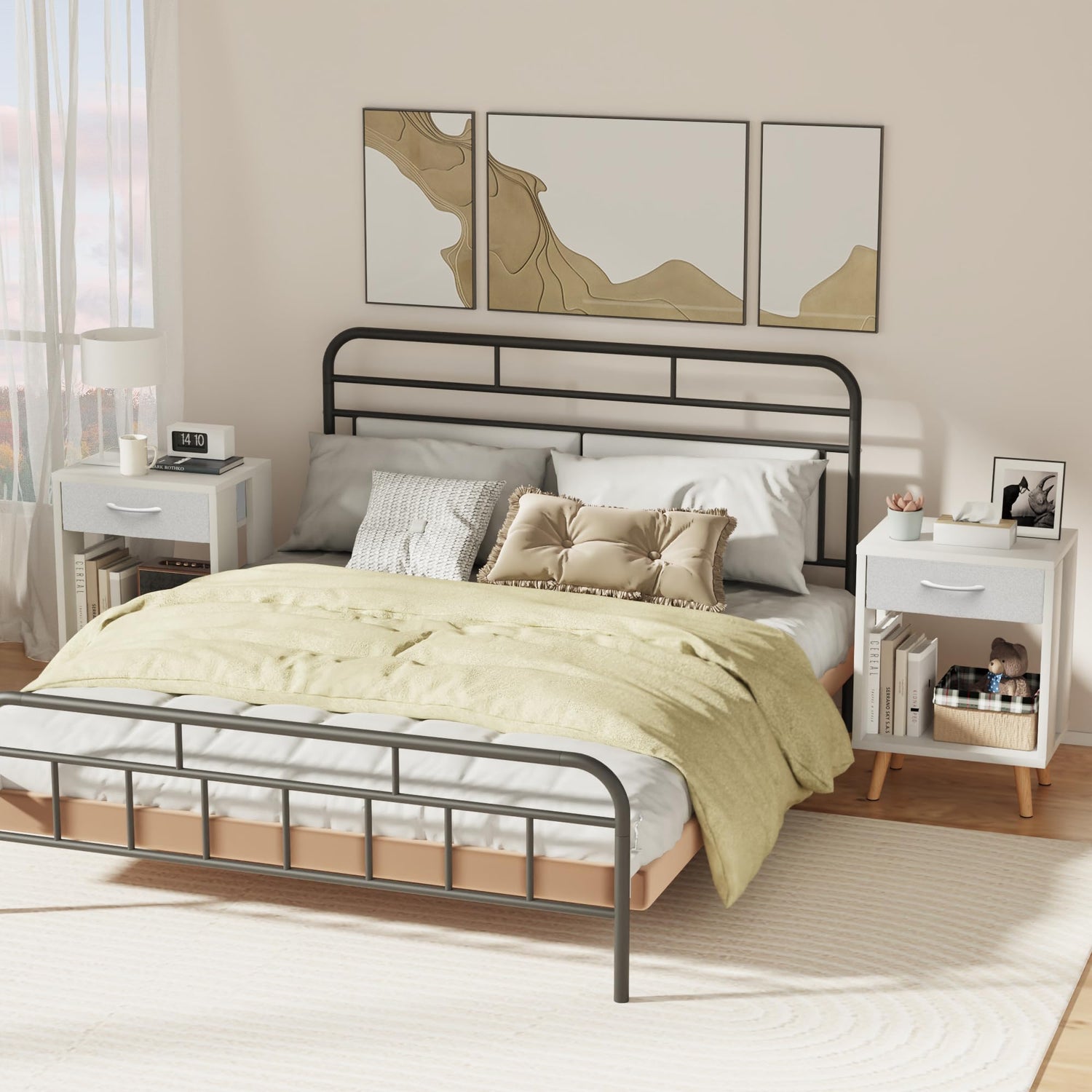 Nightstands Set of 2 with Fabric Storage Drawer and Open Wood Shelf, Side Table