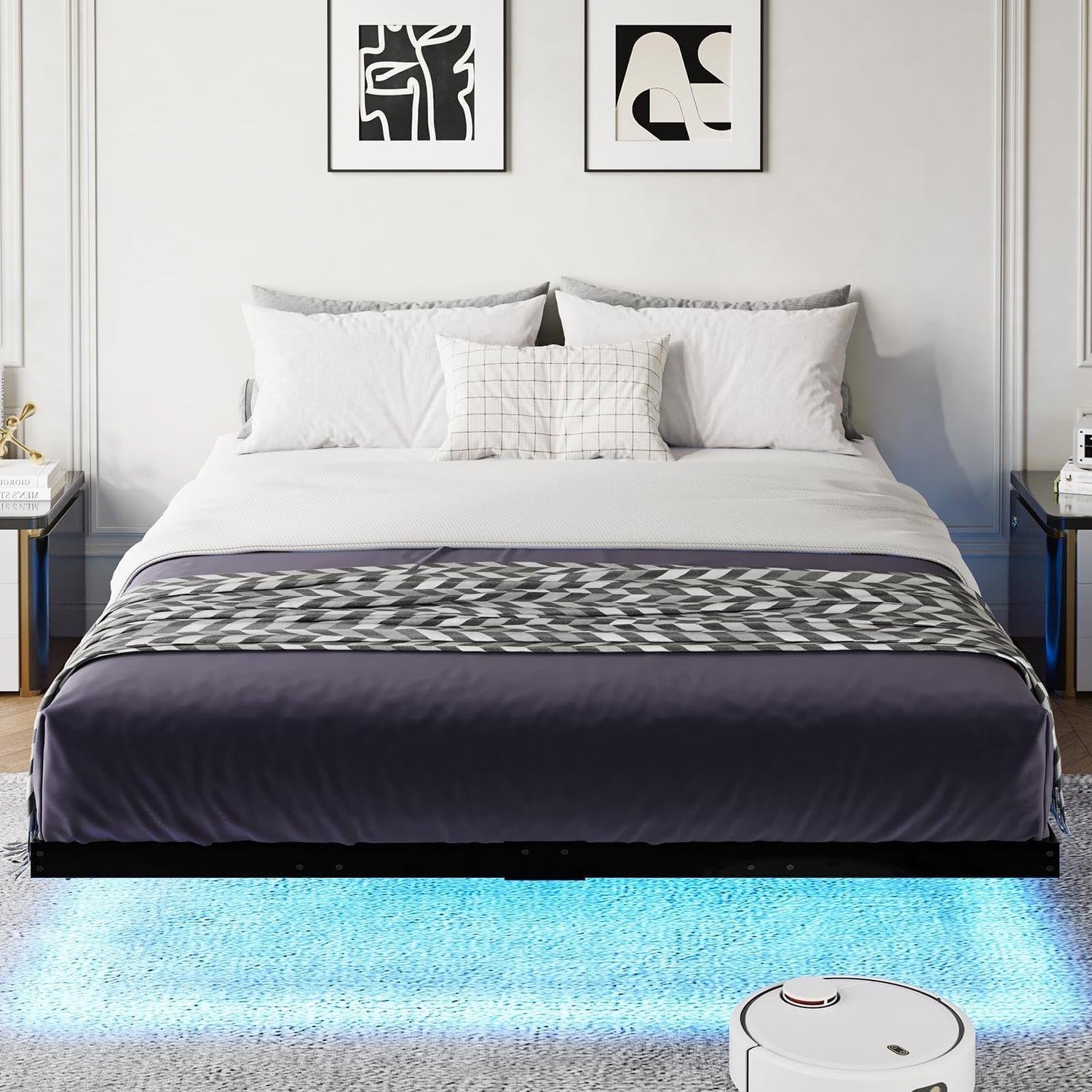 - Modern Floating Bed Design: The floating bed frame queen size features an hidden support bed leg design, with the nearest bed leg 7 inch from the tail frame can avoid to bumps. Add a sense of technology and comfort to your bedroom with the bed frame suspended in the air