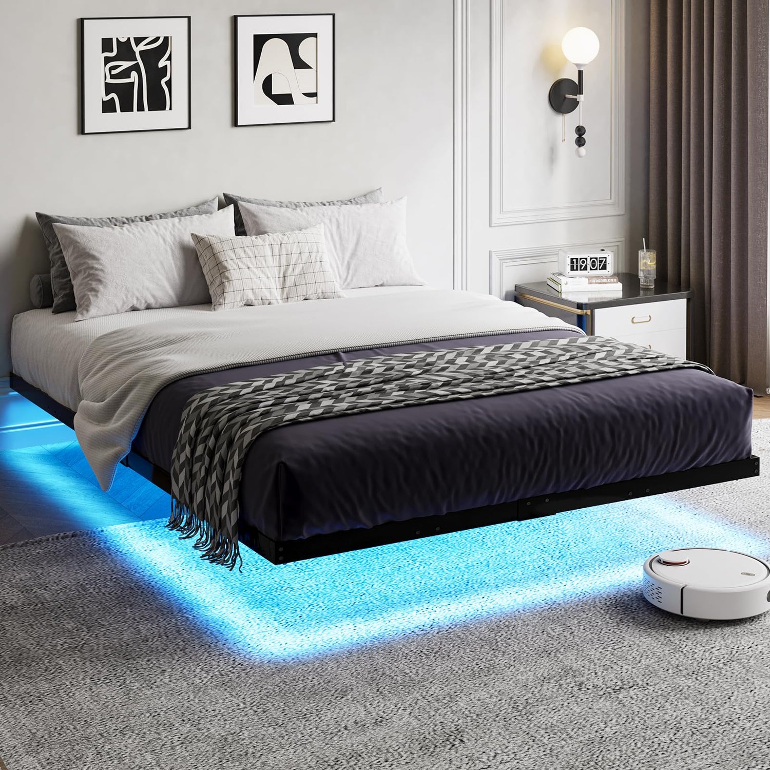 - Under Bed Storage: With 6 inch of space under the floating queen bed frame, convenient for storing extra items and shoeboxes. In addition, it is easy to clean and keep the bedroom clean.