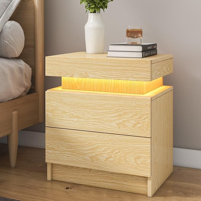 - The night table with led light is equipped with 2-stage guide rails, which make the drawer drag smoother and quieter.